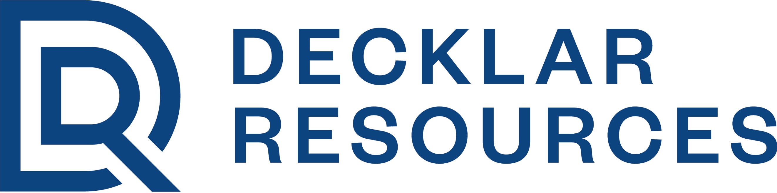 “We would like to welcome Denis to the Decklar Resources Board of Directors, and I look forward to working with him as the Company moves into project development. We thank Norm for his service to the Company and wish him all the best in his future endeavors,” said Duncan Blount, CEO & Director of Decklar Resources Inc.