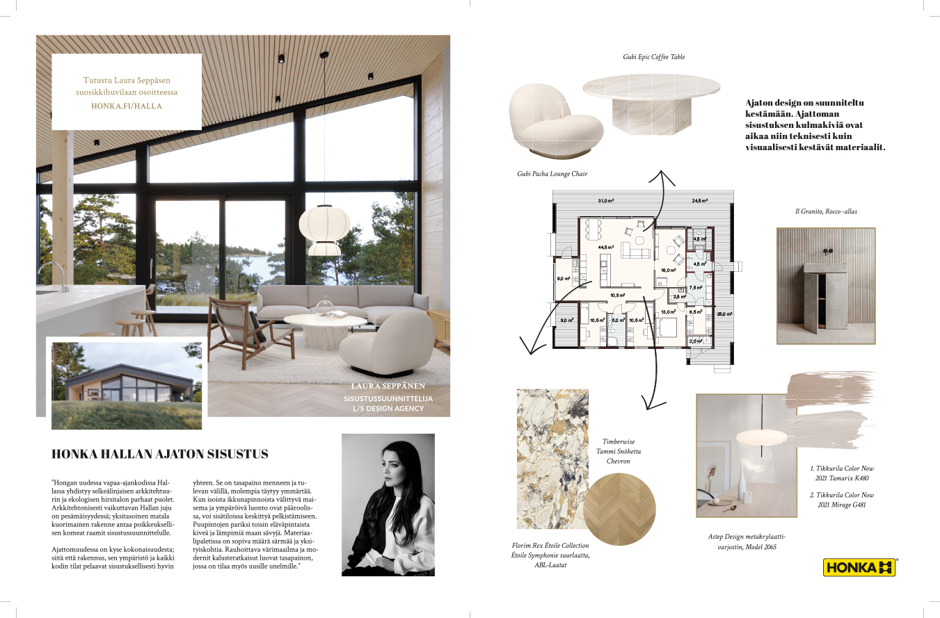 Press release Honkarakenne Ltd. 18 February 2021 Demand for log cabins is rapidly growing: their cosy atmosphere has appeal – nostalgic hideaways have made a comebackFinns are longing to spend more time in their cabins: interest in holiday homes and cabin construction has grown strongly due to the coronavirus pandemic. According to fresh financial figures released by Honkarakenne, Finland’s best-known log house manufacturer, revenue in Finland grew by 18% last year. Many familiar values have returned: peaceful getaways and closeness to nature are the priorities for holiday-homeowners.In response to this outbreak of ‘cabin fever’, Honkarakenne has revamped three nostalgic favourites and returned them to its villa collection. Traditional round logs have been replaced with a fresh look, and large windows connect the interiors with nature. The warm feel and efficient layout of the log cabins have been preserved.“Leisure-time builders are primarily seeking a connection with nature,” says Anne Mäkinen, Chief Architect of Honkarakenne. “Interiors open up to nature through large windows and the rooms offer views of the landscape’s fascinating, tiny details. Terraces are designed to include features such as summer kitchens, hot tubs and swimming pools. The focus is now on connecting spaces and functions at the boundary between indoors and out. Leisure housing supports wellbeing.”The roots of Honka’s new villas lie in the popular Tähti models of recent years. Saimi,AarniandNaava were designed according to builders’ wishes, bringing together Finns’ leisure-residence preferences. Well-sized, roofed terraces are now valued in addition to a spacious living room/kitchen and functional sleeping spaces. Terraces overlook the breathtaking scenery around the cabin. The models are ‘nest-like’ and cosy – these modern hideaways bring back childhood memories of family cabins.Interior designer Laura Seppänen favours timelessness: her interior design ideas for ecological log homes emphasise sustainabilityA nest-like architectural design can also be seen in modern log villas. Honkarakenne’s newHalla follows the internationally popular ‘shell-structure’ model. A streamlined exterior and sloping roof provide shelter for walkways and terraces.“The Halla model combines the best aspects of clearly defined architecture and an ecological log home. A low, shell-like structure built on a single level provides an outstandingly elegant framework for interior design,” says Laura Seppänen, who has created a timeless interior design moodboard for Halla.The surface and furniture materials — their feel, colours and patterns — bring peace and balance inside, leaving the starring role to the landscape framed by the windows. The designer has paired wood with lively stone surfaces and warm earth tones. “As part of my design philosophy, I emphasise ecology, favour domestic know-how, and value materials that last both technically and visually. Timelessness is about the whole. It involves a harmonious interplay between the building, its surroundings and all rooms,” says Laura Seppänen.Halla is also the beginning of longer collaboration between the interior designer and Honka. “Honka and I share the same vision: to create beautiful and practical homes that favour natural materials,” she says. Laura Seppänen is also known for her recent initiative to develop transparency and cooperation between construction industry players, which has become a social media phenomenon.Launched in January, Halla’s moodboard and the Honka Lux villa collection offer builders more holistic perspectives, as well as inspiration and support for interior design. Three interior design concepts have been created for the Honka Lux collection so that interior spaces, the building and nature form an integrated whole. Read the press release about Honka Lux here.Logs are increasingly popular as a building materialThe dream of villas or log houses built using Finnish wood was reflected in Honkarakenne’s profit last year: The publicly listed family company’s total revenue increased by 11 percent. Interest in logs as a building material has continued to grow. At the end of the year, Finland’s order backlog was 44% higher than a year earlier. About two-thirds of the revenue of this global expert in log-house building come from Finland. During its history of over 60 years, Honkarakenne has already delivered 85,000 log buildings to Finland and around the world. A stock exchange release on last year’s results can be found here.Images: https://drive.google.com/drive/folders/1sRVIas5w7jppQaL251yFWMpEFm6Hth3m?usp=sharingHonkarakenne Ltdsupplies high-quality, healthy and ecological log homes, holiday homes and public buildings. Its buildings are made from Finnish solid wood under the Honka® brand. The company has delivered over 85,000 buildings to more than 50 countries. We manufacture our home packages in Finland, at our own factory located in Karstula. In 2020, Honkarakenne Group’s consolidated net sales totalled EUR 52,9 million, of which exports accounted for 30%. www.honka.comAdditional information and interview requestsSanna Huovinen, Marketing Director, Honkarakenne Ltd, +358 (0)40 1978 797, sanna.huovinen@honka.com