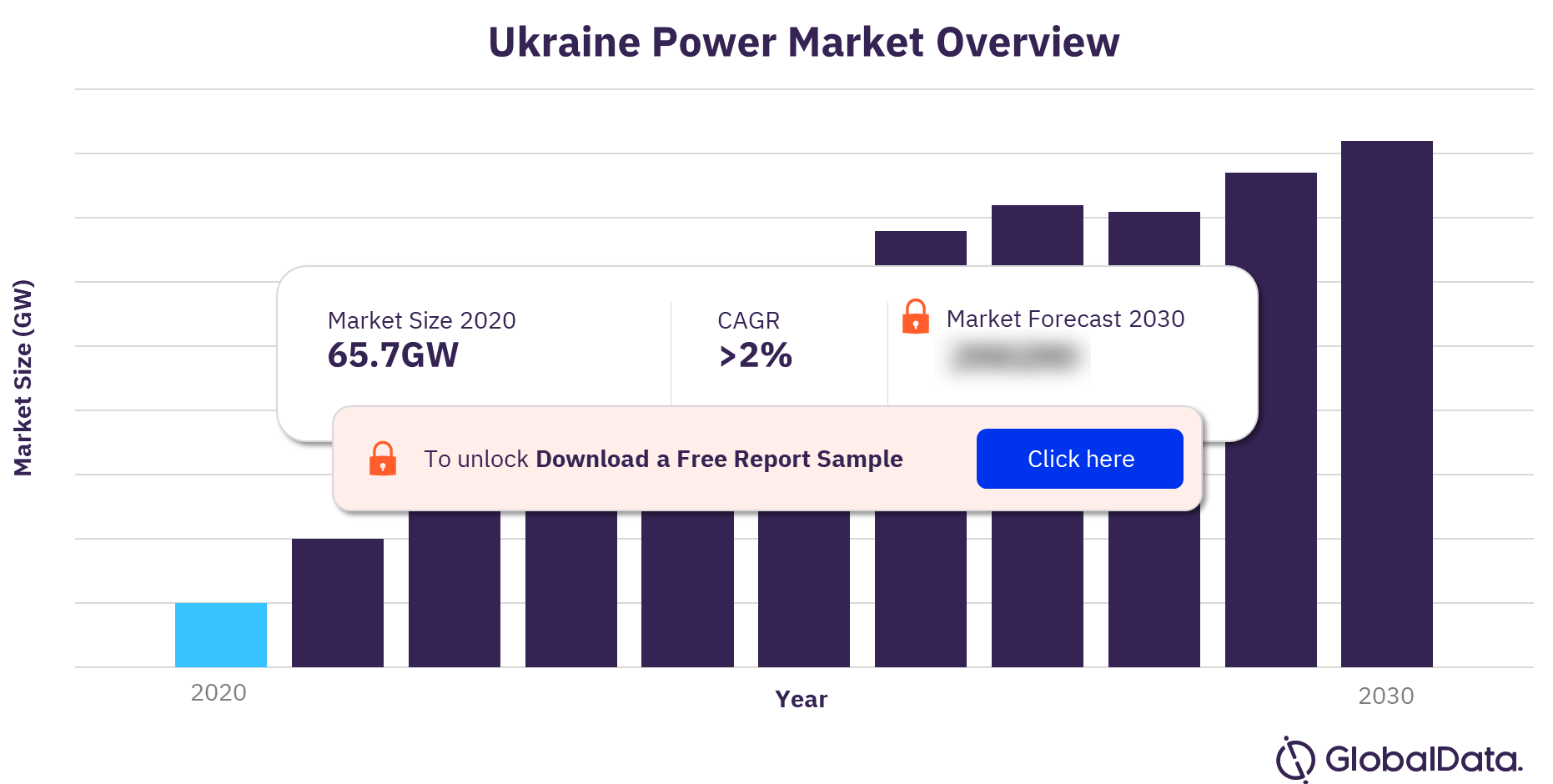 The power market size in Ukraine was valued at 65.7 GW in 2020.
