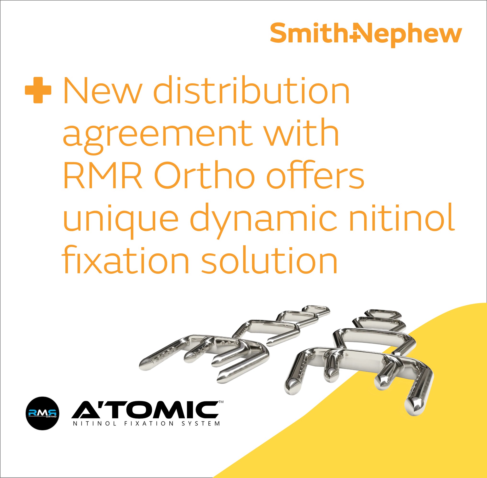 Smith+Nephew signs exclusive US distribution agreement with RMR Ortho for patented technology that provides a unique dynamic compression nitinol fixation option (A’TOMIC™) to our surgeons