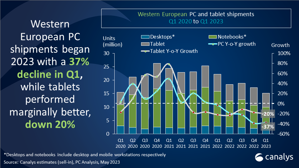 Western Europe’s PC market falls 37% in Q1 2023, but is on road to recovery